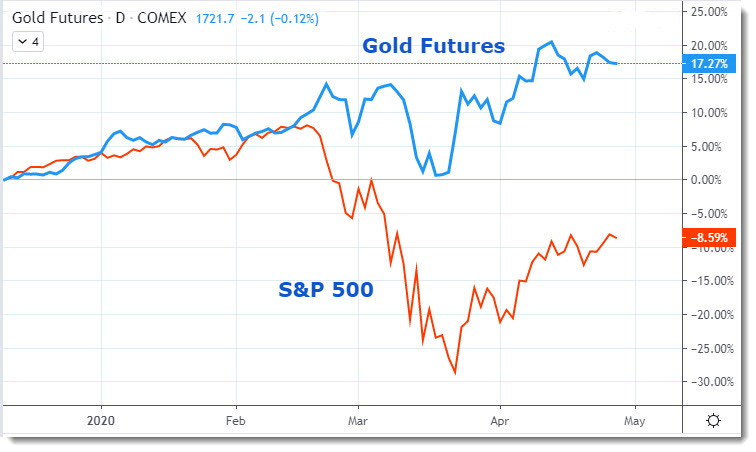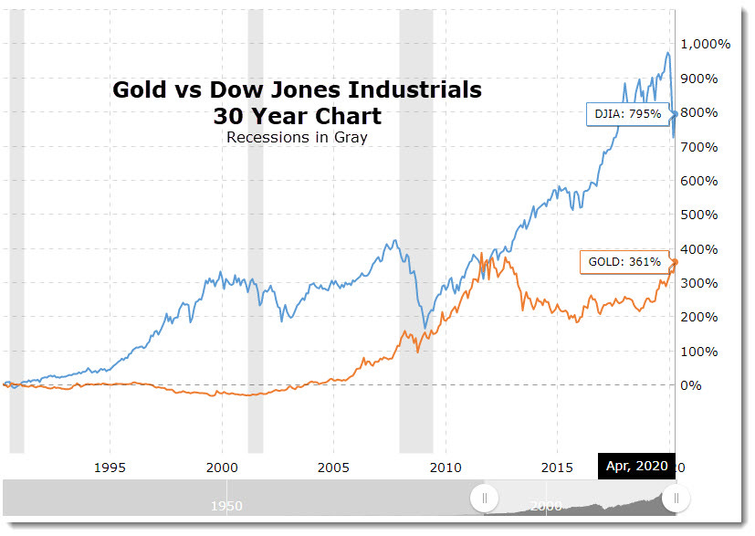 To add perspective to the subject, gold futures hit a record of $1,896.50 on Labor Day, September 5, 2011, the equivalent to $2,176 today after inflation. The Dow Jones Industrials closed at 11,139 the next day, translating to a current inflation adjusted value of 12,782. Now compare the inflation adjusted values of 2011 to today's closing prices.