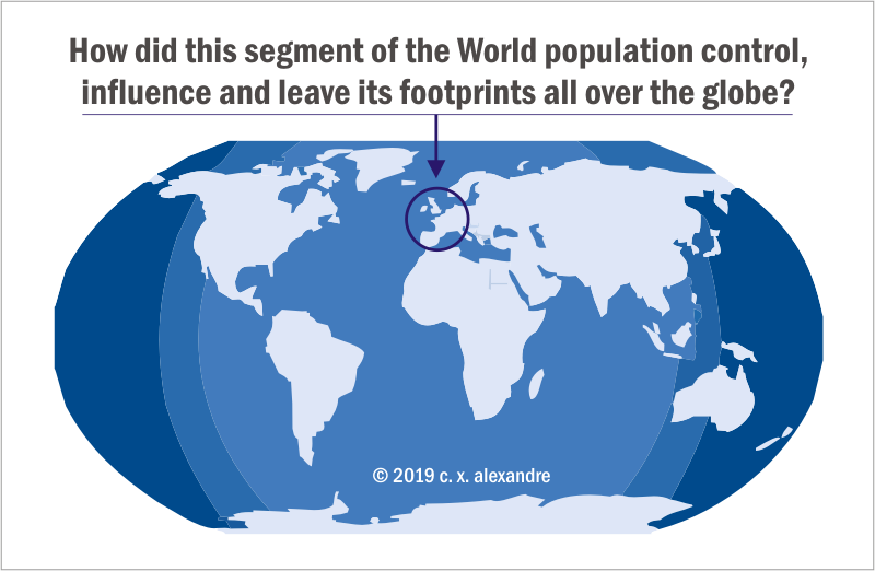 But what is left out is the broader point that, unlike other civilizations, the footprints of Western Europeans are found all over the world, and despite numerous setbacks, nothing stopped the colonizers from invading every square inch of real estate that they encountered. Conquest was the hobby of the day and the graphic below delivers the perspective that has been buried: How did a geographically concentrated small group of people do it?