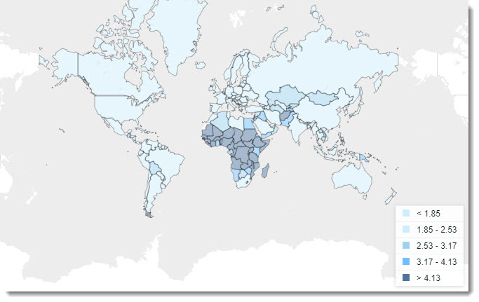 The global birth rate decline is hardly a topic of interest that will conquer the ratings game and displace the Oscars from its misery but is quietly driving Globalist policy in search of your tax contributions. According to the World Bank, the geographic area beating everyone at the human reproduction game is sub-Saharan Africa, as illustrated by the map below.