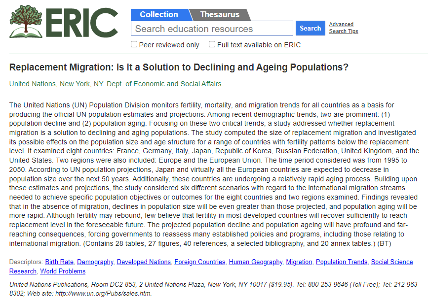 Focusing on these two striking and critical population trends, the report considers replacement migration for eight low-fertility countries (France, Germany, Italy, Japan, Republic of Korea, Russian Federation, United Kingdom and United States) and two regions (Europe and the European Union). Replacement migration refers to the international migration that a country would need to offset population decline and population ageing resulting from low fertility and mortality rates.
